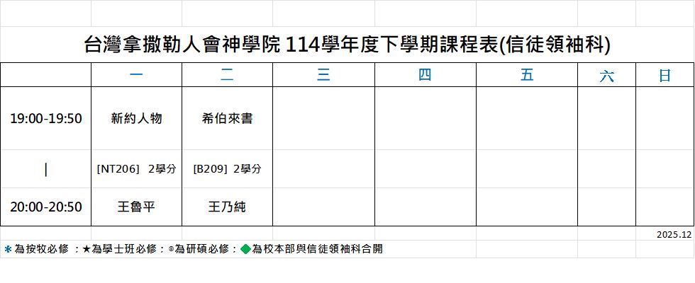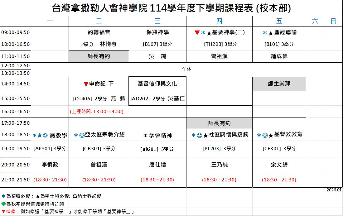 114下學期課表 於2025.12.29開放Moodle系統選課 (Moodle在 [教務資源] )