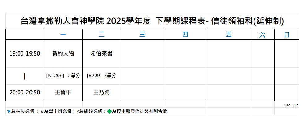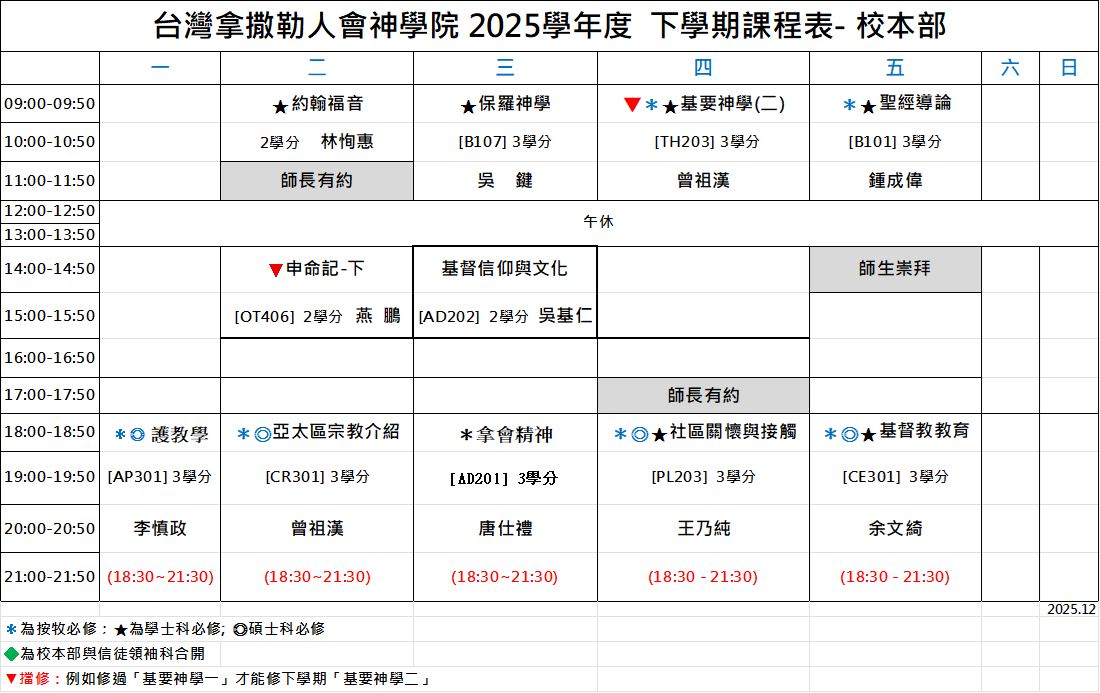 2025下學期課表 於2025.12.29開放Moodle系統選課 (Moodle在 [教務資源] )